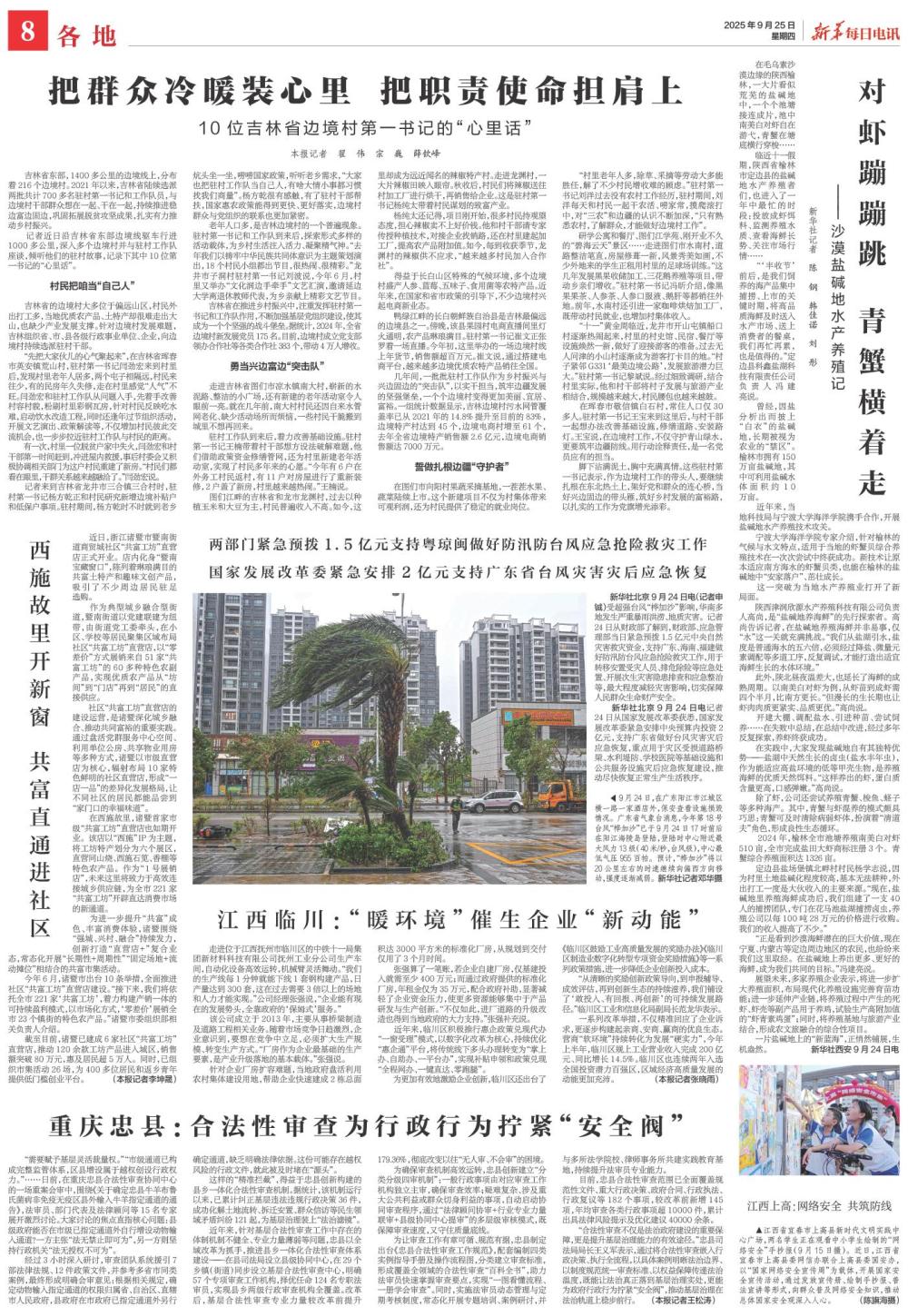 资料来源:新华社每日电讯报,9月25日 - 集合:新华社每日电报记者Zhai Wei Zong Wei Zong Wei Xue Xue Qinfeng Qinfeng位于Jilin省东部,有216个边境村庄在1,400公里以上的边界线上分布。自2021年以来,吉林省(Jilin Province)被两批由700多名第一秘书和团队成员组成的两批在村里工作,与边境干部和弥撒一起思考和合作,继续促进稳定,繁荣,增强双方,结合并扩大避免贫困和解决方案的结果。最近,记者将超过1000公里的人推向了吉林省的东部边界,去了许多边境村庄,并在乡村工作组进行了讨论,听取了他们的乡村故事,并记录了第一批秘书的“心脏单词”。村民将我们视为“人”。吉林省边境的大多数村庄都可以在偏远的山区找到。 vIllagers出来了很多工作,但是当地高质量的农业和当地特种产品很难离开山脉,而且他们也缺乏对工业发展的支持。为了应对边境村庄的发展问题,吉林安排了各个省,城市和县的行政和商业机构,以继续在边境村庄选择乡村干部。 “首先包括所有人的热情。”在黄山(Huangshan)的村庄,村省hunchun市Ying'an Town,该村的第一任秘书Yan Jinhong来到了村庄,发现大多数老年人都在村庄里,两个村庄很远,很少有人来和去。很长一段时间以来,有些房屋一直没有灰心。在村里行走时,他们觉得自己不出名。 Yan Jinhong和乡村工作团队开始出现问题,首先改善了村庄的外观,绘画村庄里有色钢形的房屋,并开始开水的项目,以响应村民的报道,因为村民的报道很难得到水。同时,他们还在节日和节日期间组织活动,进行文化演讲和政策解释等,这不仅增加了村民相互交流的机会,而且逐渐减少了与村庄和村民之间的工作距离。有一次,一场大火在一个在村庄挣扎的家庭的房屋中爆炸。 Yan Jinhong来了,NAS的干部尽快赶回回家。此后,乡村委员会积极与 - 部门联系,以重建村民的新房子。 Yan Jinhong说:“所有的村民都看到了它,干部和群众之间的关系变得更加有效。”记者到达桑赫镇的桑赫村时,耶林省,阳fangian,Yang Fangqian该村的第一秘书,村民们研究了将新家庭和最低生活家庭增加的东西。在村里逗留期间,杨方齐安(Yang Fangqian)偶尔会坐在康(Kang),偶尔坐在康(Kang),谈论国家政策并倾听村民的需求。 “每个人都提到乡村工作团队是自己的人民,他被用来对我们讨论大小的事情。”杨方兹安非常感动。在乡村干部的帮助下,可以更快,更好地实施使农民受益的国家政策,并且人们与边境与党组织村庄之间的联系更加紧密。村庄,他们探索了各种形式的活动携带者,以打动能量并在农村生活中收集能量。所有18组村民都发布了该计划,这是非常活跃而渴望的。 “利加·博(Liu Bo塔恩(Taon),该村庄将举办艺术表演的“手工文化”表演,邀请扬比大学退休教师的代表向村民展示出色的艺术节目。在促进农村振兴时,吉林省正在关注村里第一秘书和工作团队的角色。我们将继续加强土著组织的建设,并使战场强大。根据统计数据,在2024年,在全省的边境村庄开发了175名新党员。目前,边境村已建立一个党派分支机构,以领导合作社和其他各种类型的合作社,驱使40,000人增加收入。勇敢地成为Xingbian Bian Fu Bian Bian的“攻击团队”。步行前往南达(Nanda)的村庄,林格舒(Liangshui)镇,吉林省穆恩市,全新的水泥道路,干净的小广场和新建的成人活动房间。几年去,南达村村民仍然记得水管网络的老化和缺乏活动区域的老化,所以一些村民只是搬进了城市而不想返回。乡村工作组到来后,我们将专注于改善基础设施。该村第一任秘书王宁(Wang Nan)带领村庄的干部找到解决问题的方法。他们使用政策资金来组织管道网络,并为村庄建立了新的成人活动室,并意识到近年来村民的喜好。王南说:“今年,六个在外面工作的村民回到了村庄,有11个正在重新装修房屋,两家建造了新房屋,使村庄更加活跃。”过去,在Tumen河上的Jilin Province的Longyuan Village主要用于种植玉米和大豆,而村民通常很低。现在,这个地方已成为一个著名的辣椒特色村。小辣椒田的大面积Agers将胡椒送到乡村过程不会以良好的价格出售。现在,每次收获季节到来时,朗尤恩村庄的胡椒粉供应不足,并且“更多的村民加入合作社”。多亏了长海山的特殊气候环境,许多边境村庄都拥有人参,蓝莓,Schisandra Chinensis和Edible Fungi等农产品。近年来,在国家和省级政策的指导下,许多边境村庄都出现了新的电子商务格式。雅鲁河上的长海韩国自主县是吉林边境最遥远的县之一。到了晚上,该县圭亚那村的电子商务现场直播室显然被点燃了,并且有各种各样的农业L产品。该村第一秘书Cui Wenzheng组织了现场广播。今年年初,这里举行了一个边境村在线新年商品节,销售额超过100万元。 Cui Wen说,通过开发电子商务平台,在全国范围内出售了越来越高质量的边境农产品。近年来,一批基于乡村的工作团队是农村再生和界限发展和增强界限的“战斗”。在实际的工作和责任中,他们为边界发展建立了一个强大的堡垒,边界的村庄变得更加美丽,可行和富有。一组统计数据表明,吉林村庄的污水网络管理范围从2021年的14.8%增加到目前的83%,其中有45个边境专业村庄和61个电子商务村庄。去年,该省边境特色产品的销售达到2.6亿元,电子销售E边境销售7000万元人民币。誓言是植根于边界的“监护人”。在Tumen City的Xiangyang Village选择水果和蔬菜的基础上,仅市场就在市场上。这个新项目不仅为集