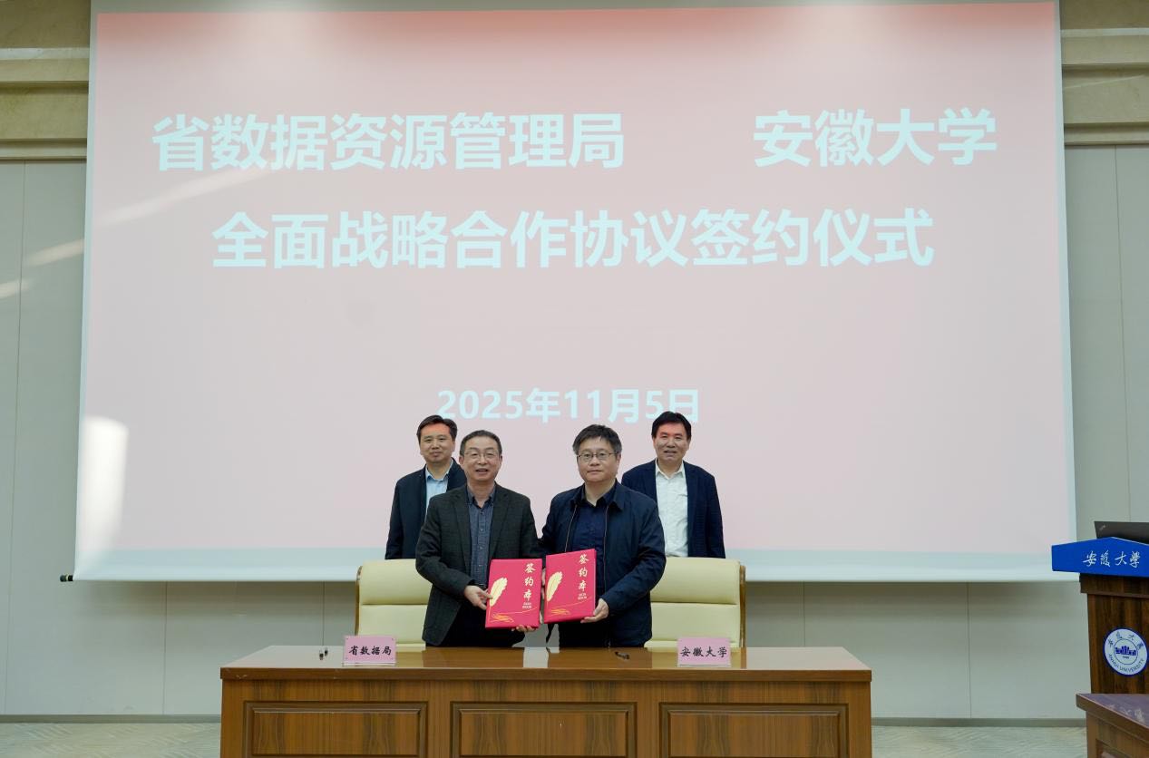 众安在线、众安新闻客户端消息,11月5日下午,安徽大学与安徽省数据资源局全面战略合作协议签约仪式暨安徽省数据元创新研究院揭牌仪式在安徽大学清远校区举行。安徽省数据资源局党组成员、副局长王爱学与安徽大学党委书记于宝涛共同签署协议并授牌“安徽省数据元创新研究院”。安徽大学党委副书记钱海主持签约仪式,并与安徽省数据资源管理局党组成员、副局长甘伟文代表双方签署协议。双方共同见证“安徽省数据资源广告”部—安徽大学全面战略合作协议》正式签署,标志着双方合作正式进入系统化、纵深发展的新阶段。随后,大数据与统计学院党委副书记、院长王学军汇报了合作思路和学院运行机制。会前,王爱学一行还参观了强光磁科学中心和集成电路先进材料与技术教学研究机构,详细了解安徽的发展情况安徽省数据资源管理局和安徽大学相关单位负责同志向会议打招呼,深化战略政治合作不仅将为“双创”注入新的内涵。安徽大学“一流”建设的同时,也为安徽省国家数据元综合试验区建设和数字强省战略实施提供有力支撑。双方将以此次合作为新起点,携手深化数据元领域,共同为安徽数字强省建设和全国数据元市场发展做出新的更大贡献。据悉,安徽省数据元创新研究院定位为“智库”和全省数据元领域的“动力源”,致力于开展数据元理论研究、技术创新、人才培养、产业强国等方面的工作(记者石瑞文)